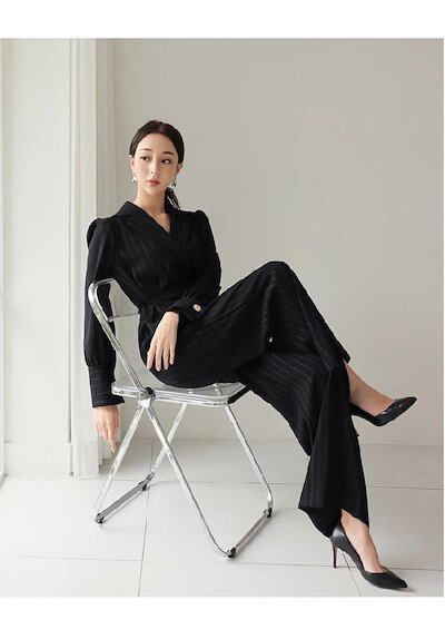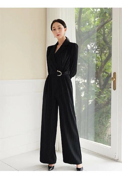 オールインワン レディース パンツドレス ドレス パンツ ワイドパンツ パンツドレス ストライプ 大きいサイズ シンプル オフィス カジュアル レディース ファッション エレガント 着やせ OL 通勤