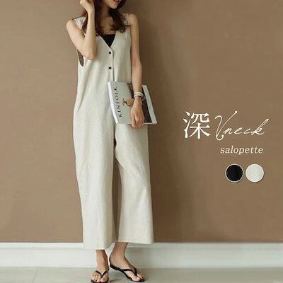 オールインワン レディース サロペット パンツ パンツ ワイドパンツ ロング丈 春 夏 マタニティ Vネック 深Vネック きれいめ 着痩せ 大きいサイズ カジュアル おしゃれ 体型カバー ゆったり カ