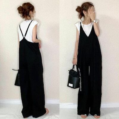 オールインワン レディース サロペット パンツ ワイドパンツ 春 夏 秋 ゆったり 体型カバー 女性 お呼ばれ 可愛い 無地 大きいサイズ おしゃれ ゆったり カジュアル ナチュラル 着痩せ 春物