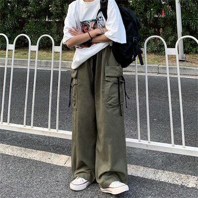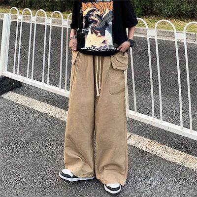 メガ割 ワイドパンツ カーゴパンツ メンズ レディース ミリタリー カーゴ コットン ガウチョパンツ 無地 ボトムス ポケット 長ズボン 大きいサイズ ウエストゴム 体型カバー 着回し アウトドア