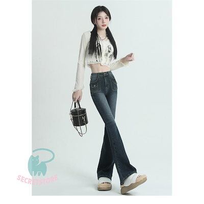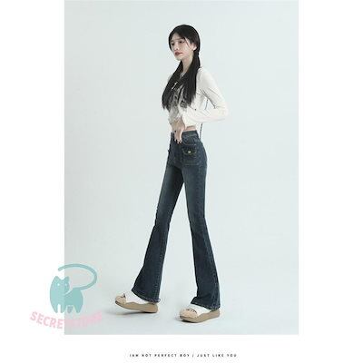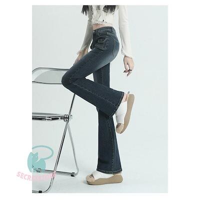新品(タイムセール)デニム パンツ レディース ボ 美脚 チノパン ラッパ ハイウエスト ワイドパンツ パンツ 体型カバー 春 夏 秋 ジーパン 20代 30代 40代 カジュアル
