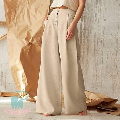 新品(タイムセール)ワイドパンツ チノパン レディース リネン ゆったり ボ パンツ ロングパンツ ガウチョパンツ 春夏 バギーパンツ イージーパンツ ウエストゴム