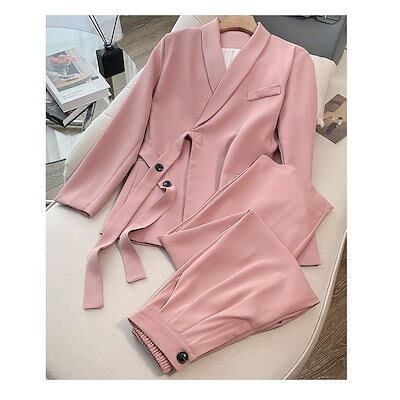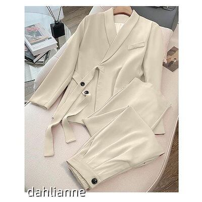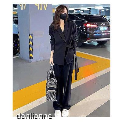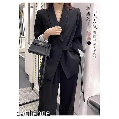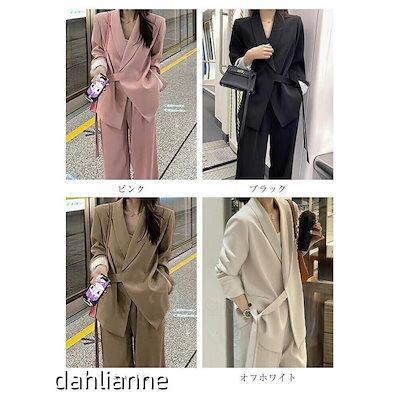 セットアップ レディース パンツスーツ 2点セット ジャケット ビジネススーツ ワイドパンツ ハイウエスト オフィス ストレートパンツ コーデ 秋 冬 春 長袖