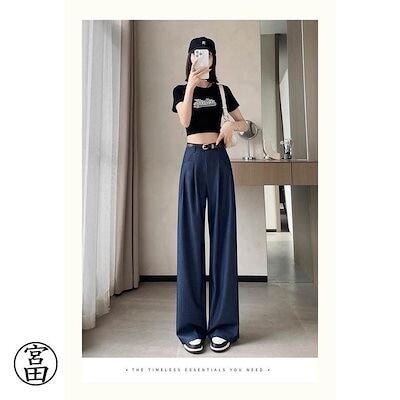 冬の暖かさ!ワイドパンツ デニム レディース 春 秋 夏 ひんやり ロング丈 ワイドパンツ パンツ きれいめ 可愛い 無地 あったか 柔らかい 大きいサイズ 体型カバー おしゃれ