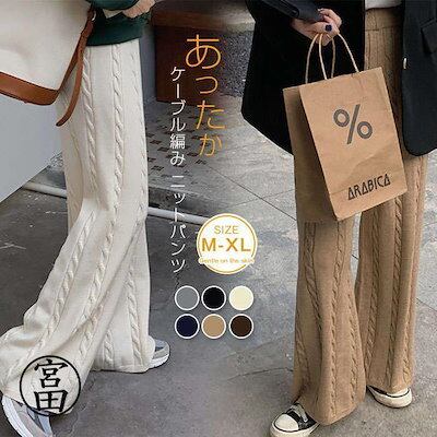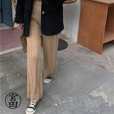 冬の暖かさ!ワイドパンツ レディース ニットパンツ 春 秋 ニット パンツ ケーブル編み ロング丈 レディース ガウチョ パンツ ニットパンツ 無地 キレイめ ハイウエスト 美