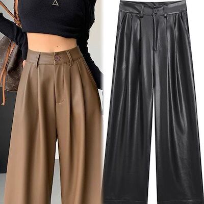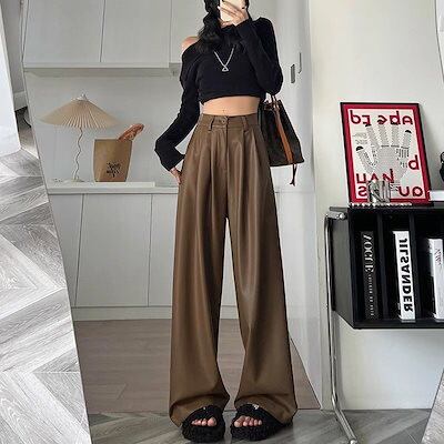 春冬 新作 大きいサイズ レザーパンツ レディース PUズボン ゆったり 着やせ ワイドパンツ 防寒 防風 パンツ 韓国ファッション 体型カバー カジュアル