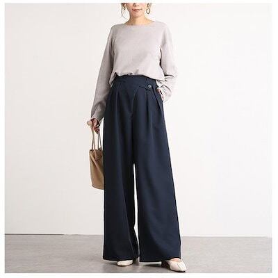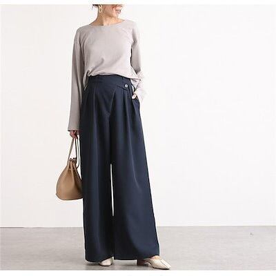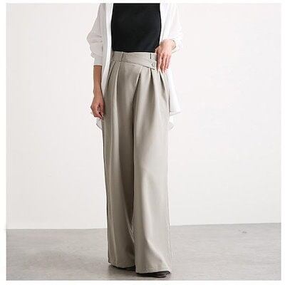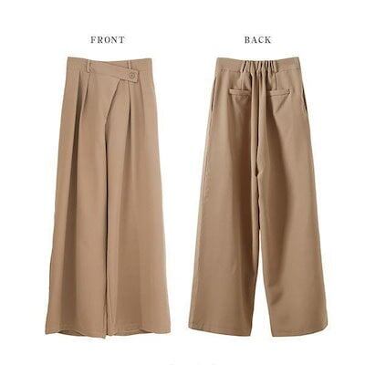 ワイドパンツ レディース ガウチョパンツ ウエストゴム ゆったり アシンメトリー ラップデザイン ボトムス 春夏 おしゃれ ポケット付 着痩せ ロング