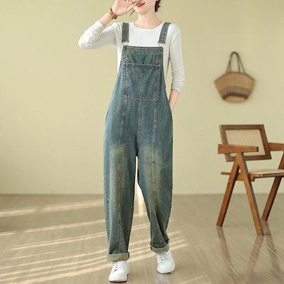 ワイドパンツ レトロ カジュアル オーバーオール ジーンズ レディース 2024春 新作 ライトオールインワンパンツ デニムサロペット