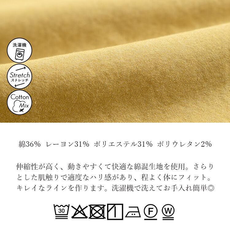 綿混ストレッチツイルカラーパンツ 無地 洗濯機 綿混 ウエストゴム 美脚 ワイドパンツ チノパンツ