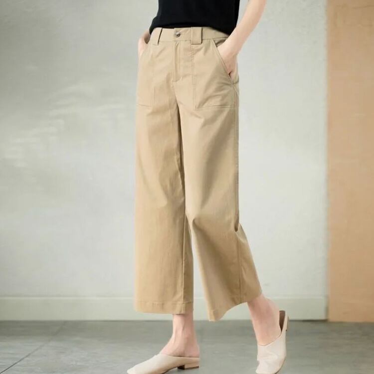 セミワイドパンツ チノパンツ 9分丈 レディース 薄手 春夏秋 ツイル生地 ストレートパン
