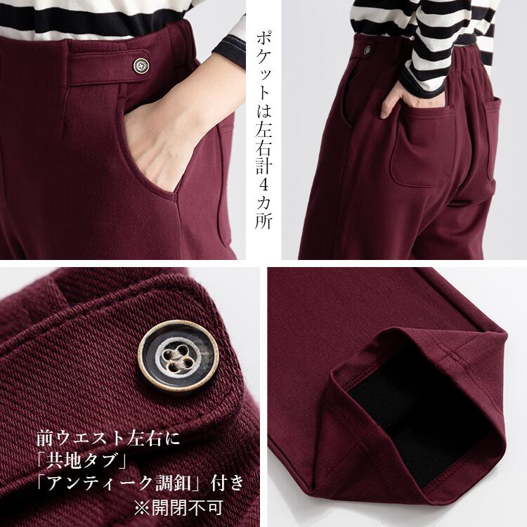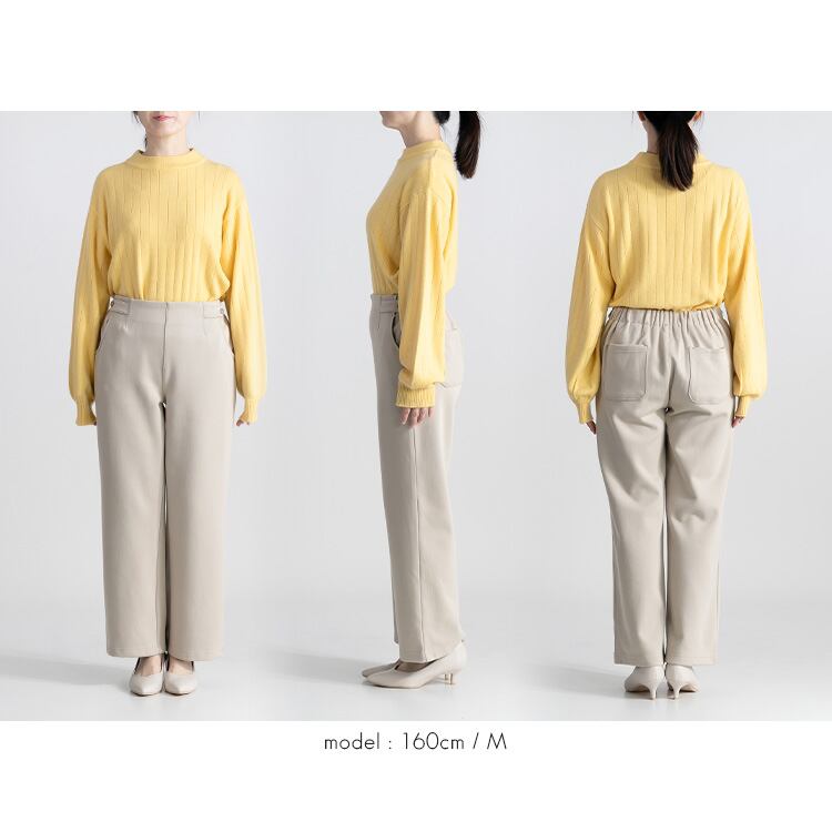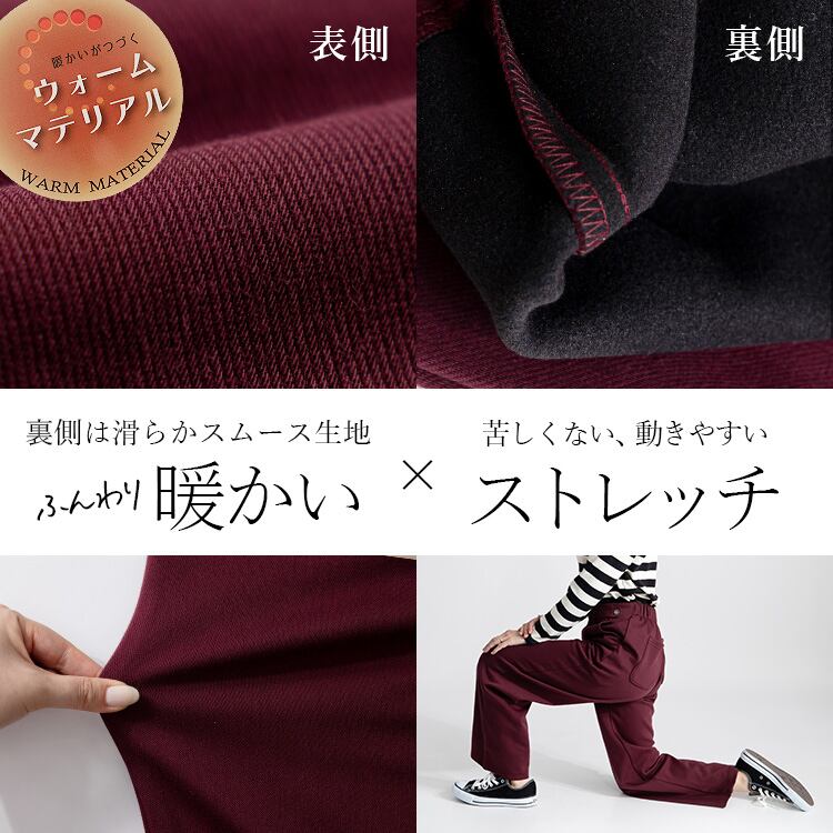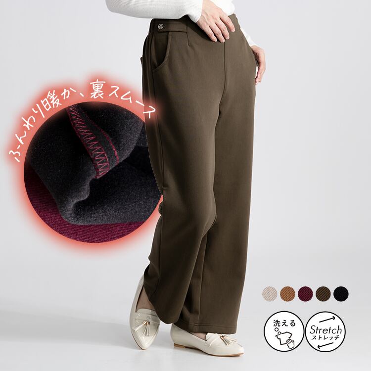 ストレッチボンディングカラーパンツ 微起毛 ストレッチ ウエストゴム 美脚 ワイドパンツ 裏起毛