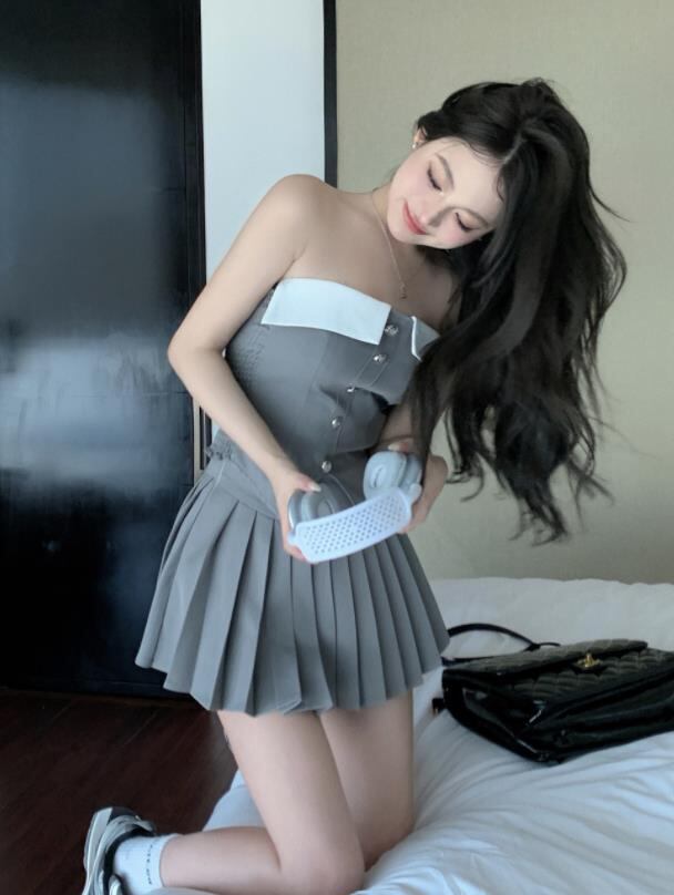 2023春秋新作 ボトムス 女 レディース ハイウエスト ミニスカート プリーツスカート セット S-L
