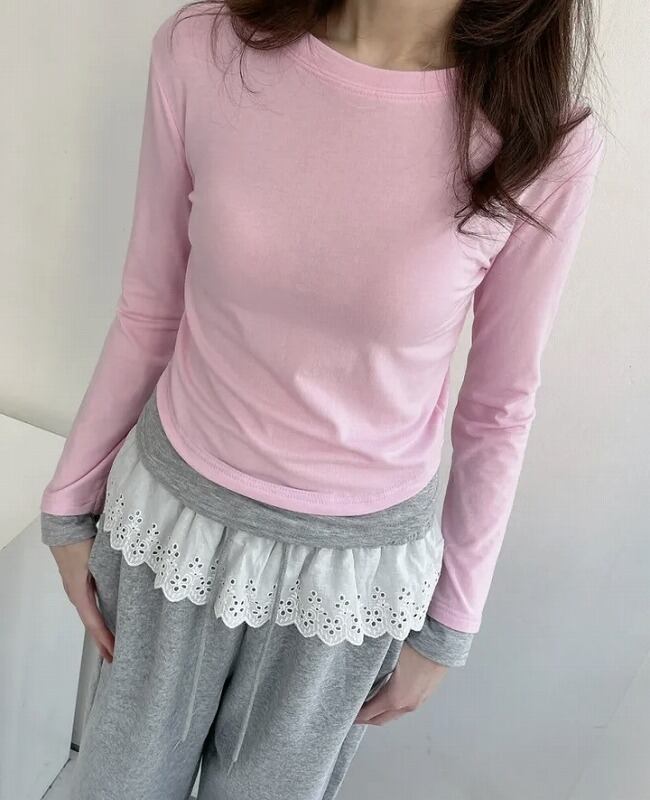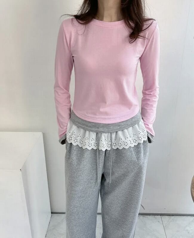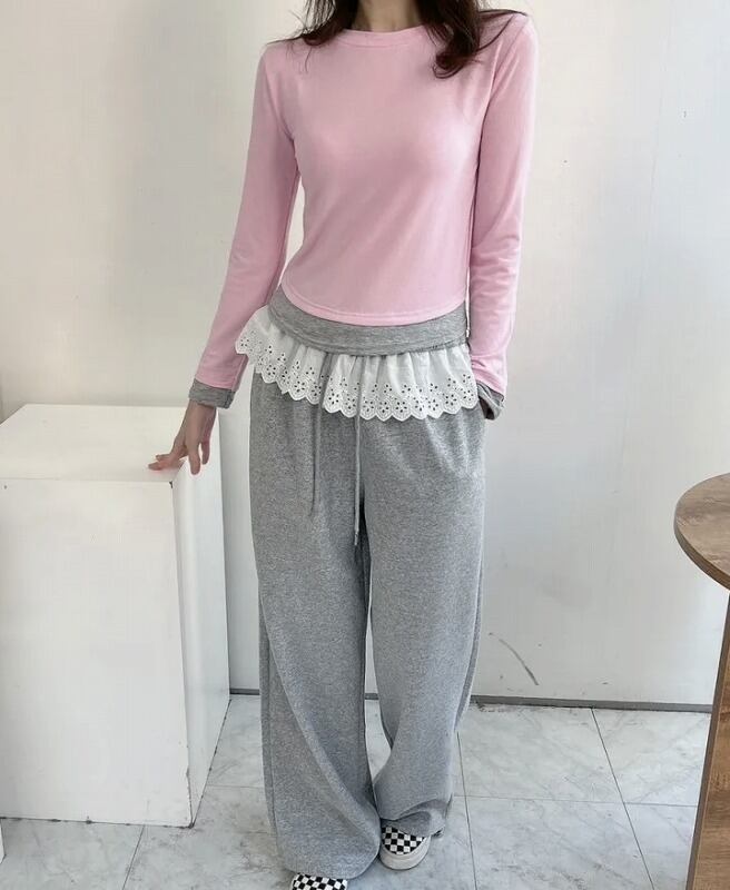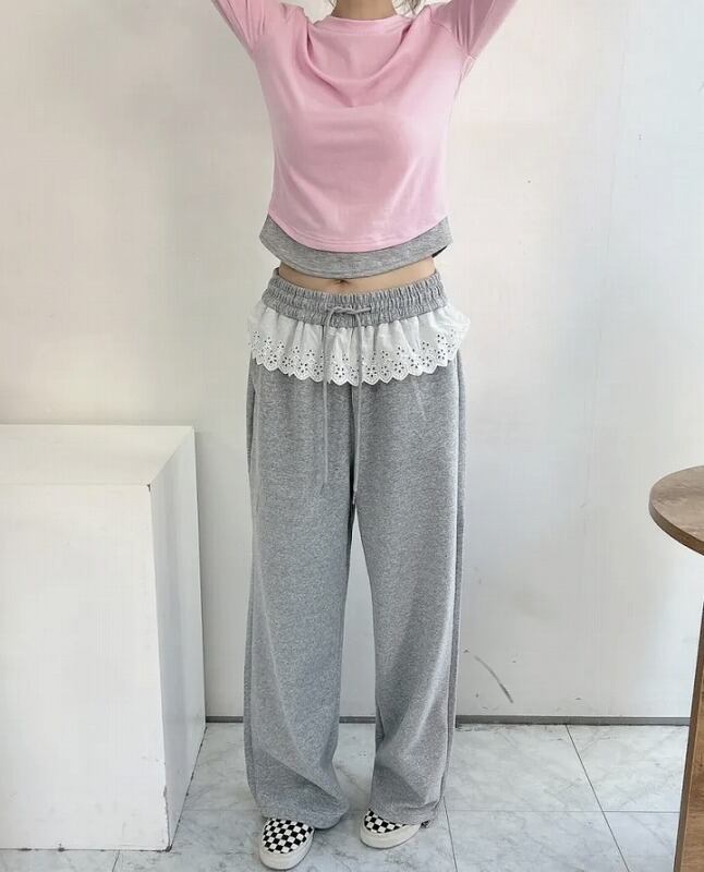 パンツ フリル 切り替え 体型カバー 着痩せ レース シンプル カジュアル