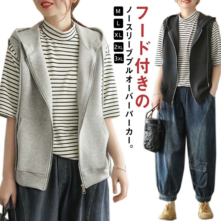 送料無料 ベスト レディース おしゃれ カットソーベスト ジレ フーテッドベスト 前開き