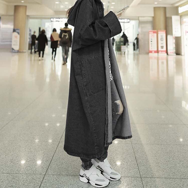 デニムジャケット スプリングコート ロング丈 フード付き アウター レディース デニムコー