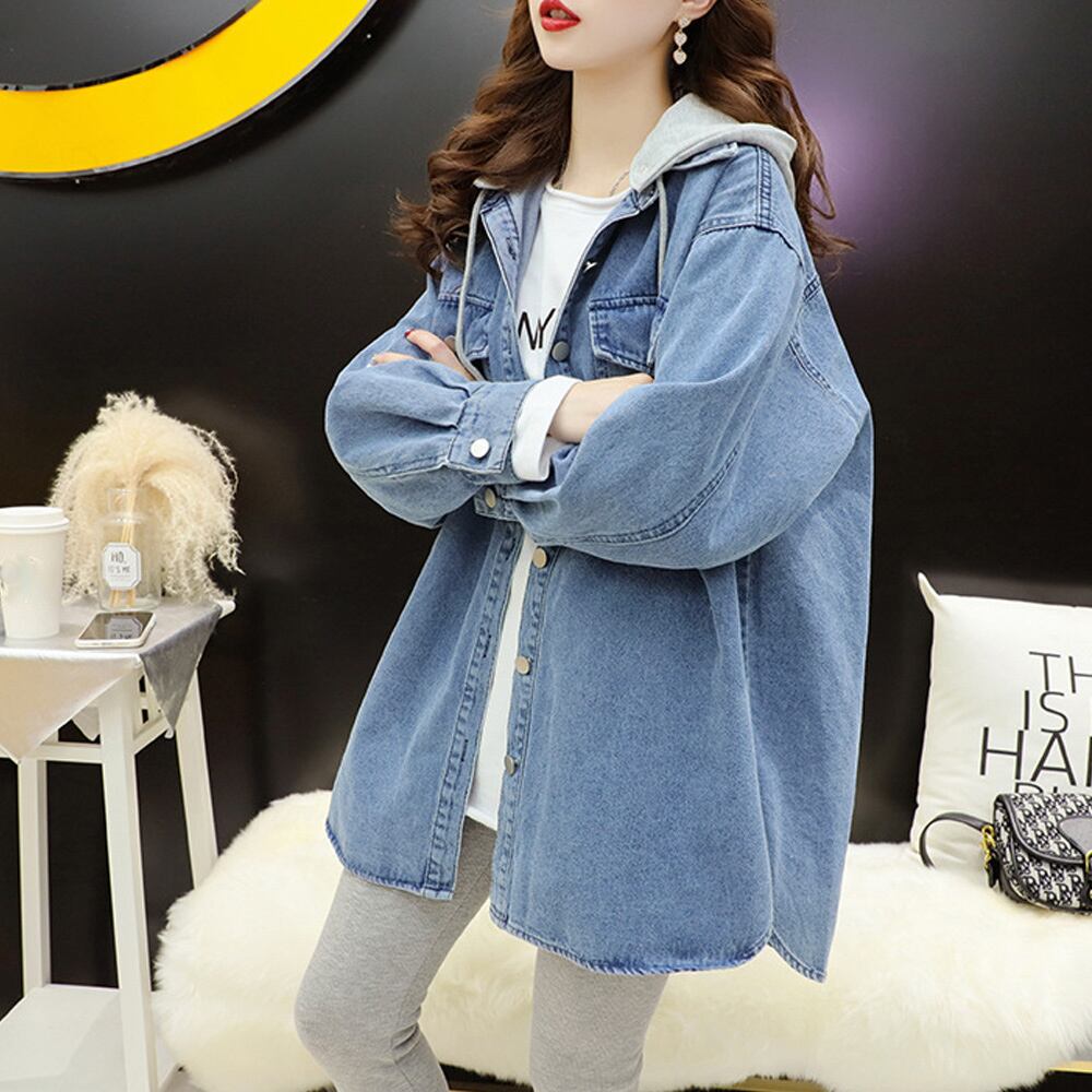 【日本倉庫即納】 フード付き デニムジャケットレディース