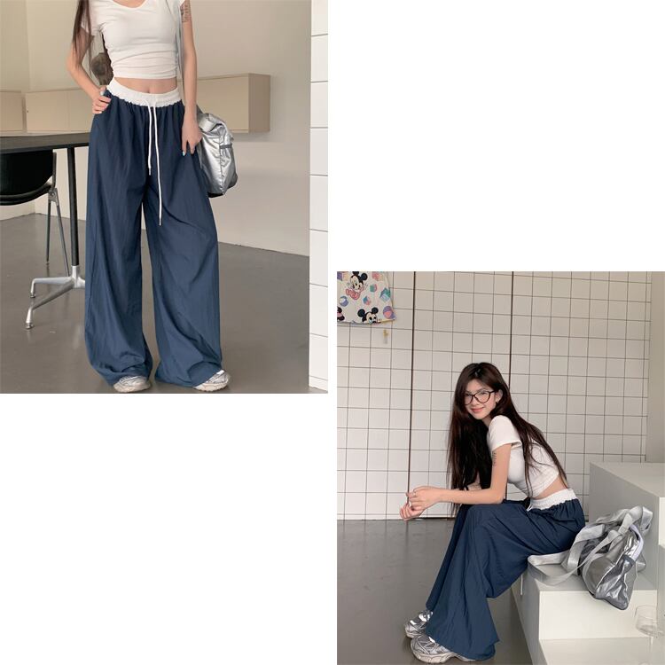 ウエスト配色 ドロスト ルーズワイドパンツ【即納】 レディース 韓国 プチプラ おしゃれ