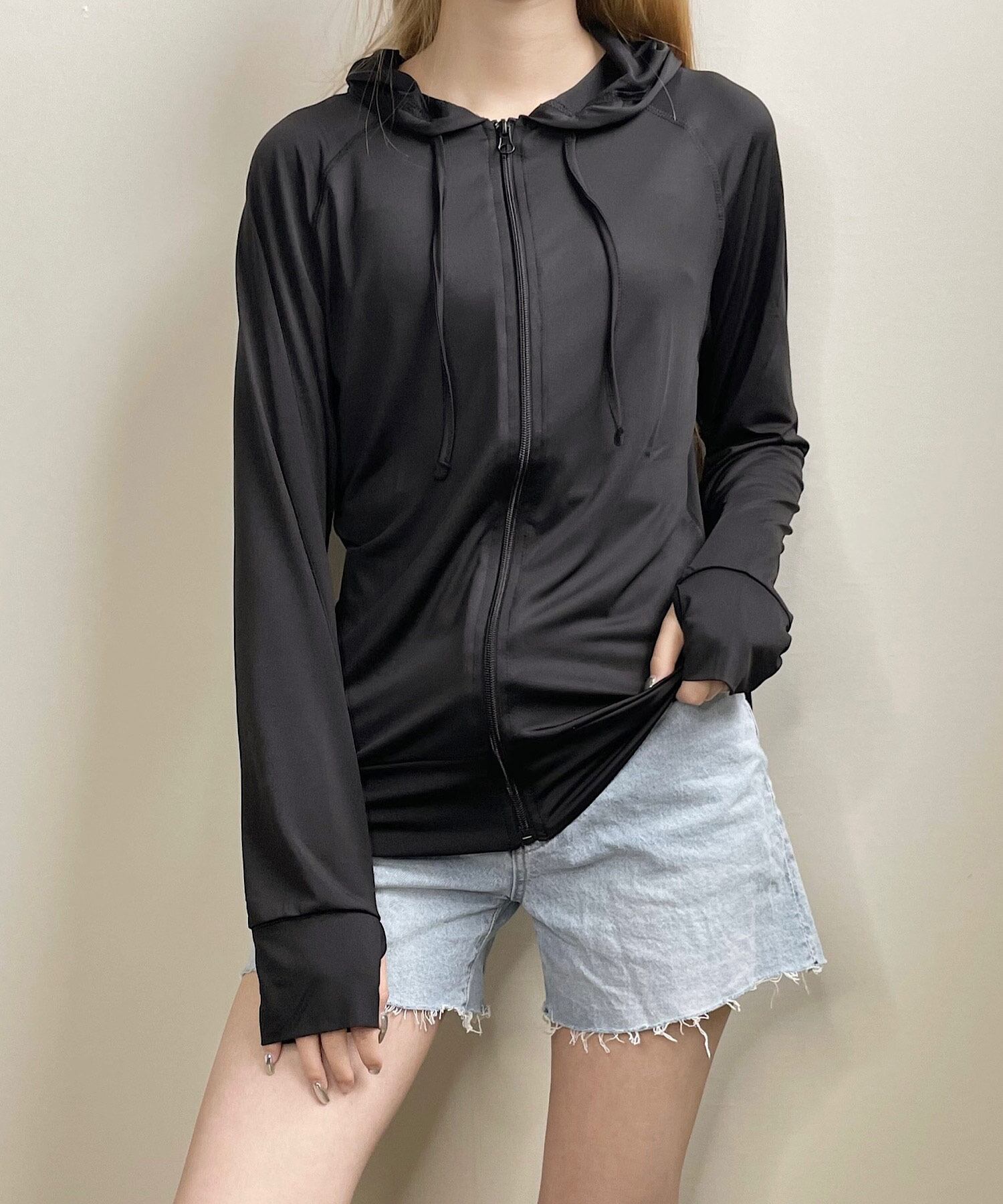 サムホール付き ラッシュガード ジップパーカー 【即納】 長袖 UVカット レディース 韓国 プチプラ