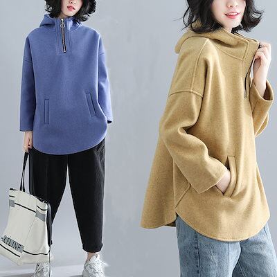 厚手ラシャスウェットパーカー韓国ファッション秋服レディース大きいサイズ長袖トップス