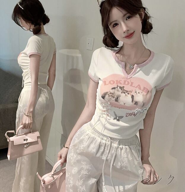 全2色 半袖Tシャツ 切り替え バイカラー スリム 着痩せ シンプル
