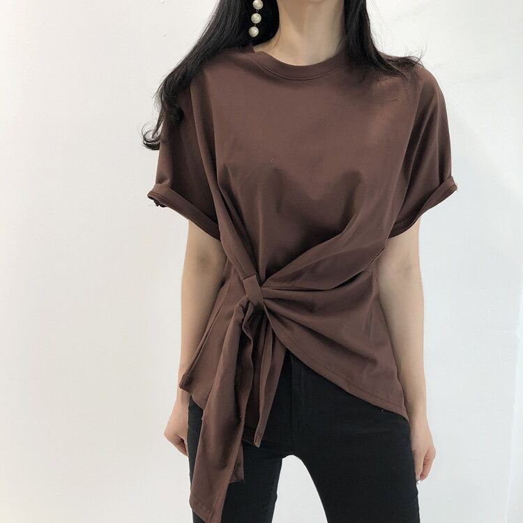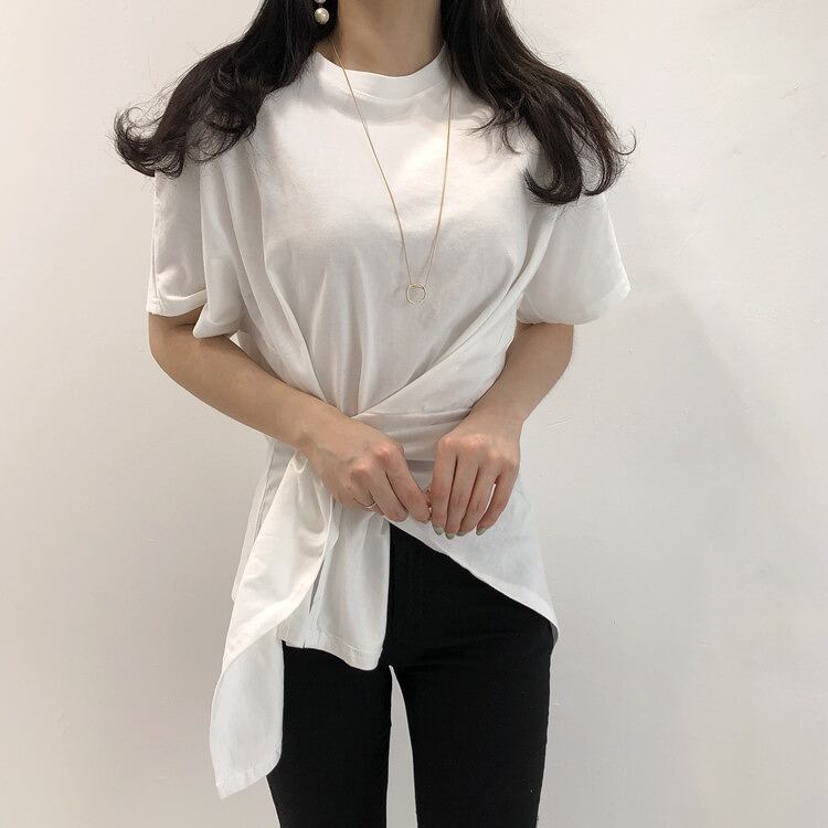 全3色 半袖Tシャツ アシンメトリー 切り替え 体型カバー 着痩せ カジュアル