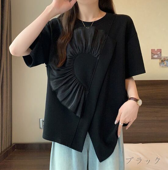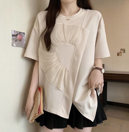 全3色 半袖Tシャツ フリル 切り替え 体型カバー 着痩せ sweet系