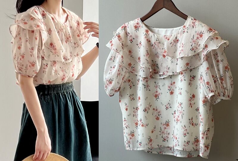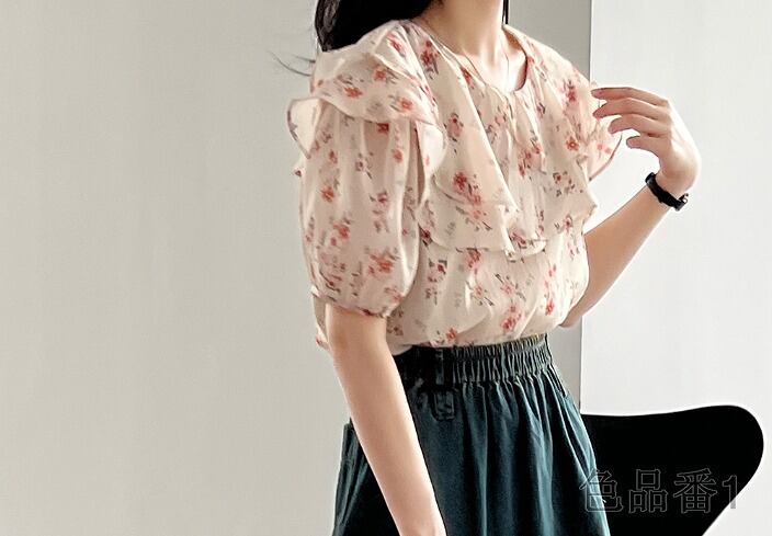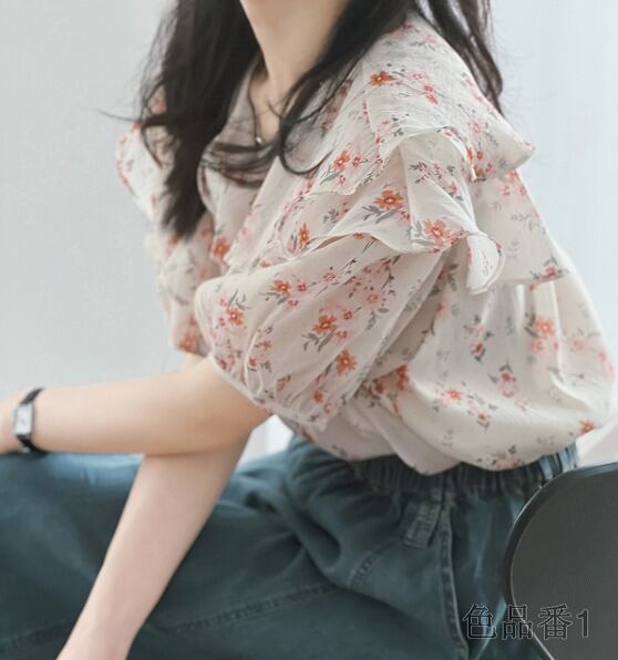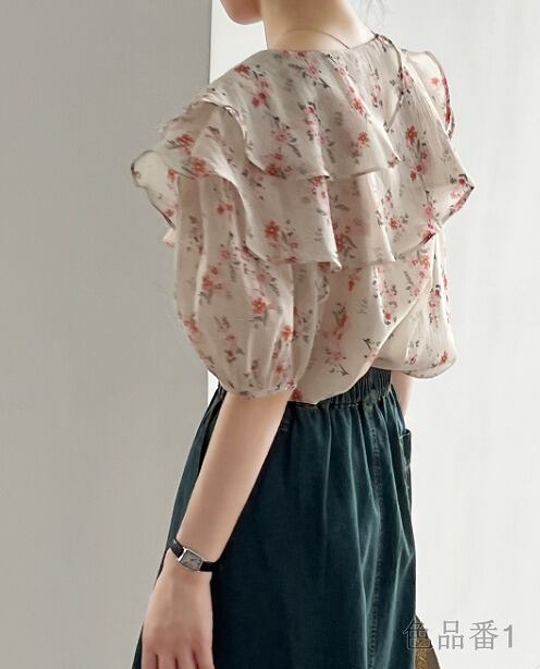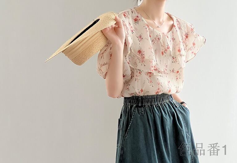 半袖シャツ フリル 切り替え バイカラー 体型カバー 着痩せ sweet系