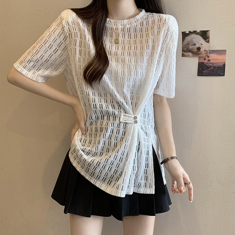 全2色 半袖Tシャツ 切り替え 体型カバー 着痩せ 【大きいサイズあり】