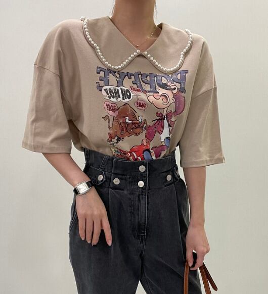 全3色 半袖Tシャツ プリント 切り替え 体型カバー 着痩せ シンプル カジュアル
