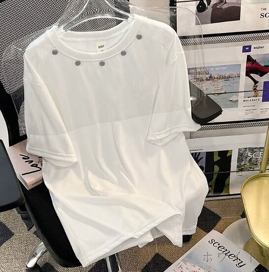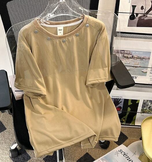 全3色 半袖Tシャツ 切り替え 体型カバー 着痩せ 原宿系 カジュアル