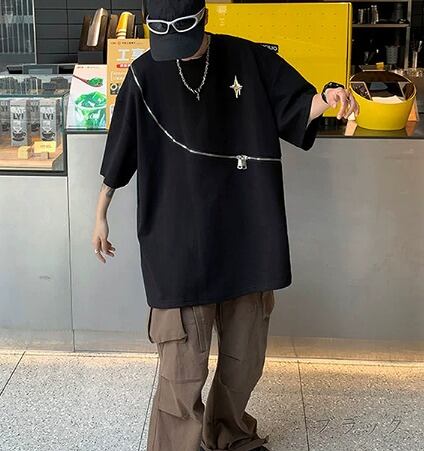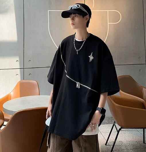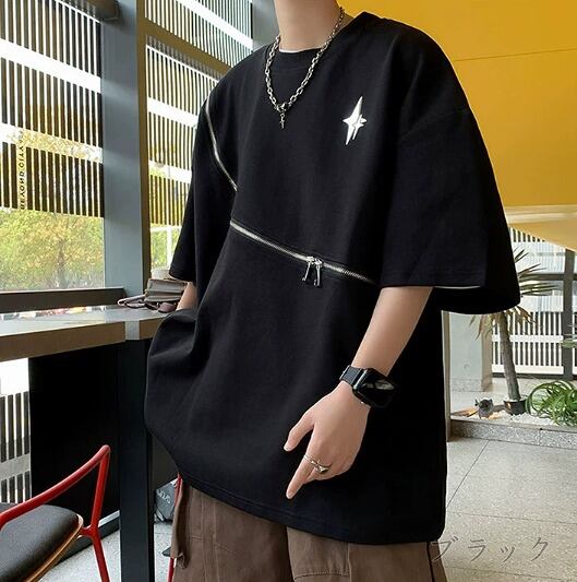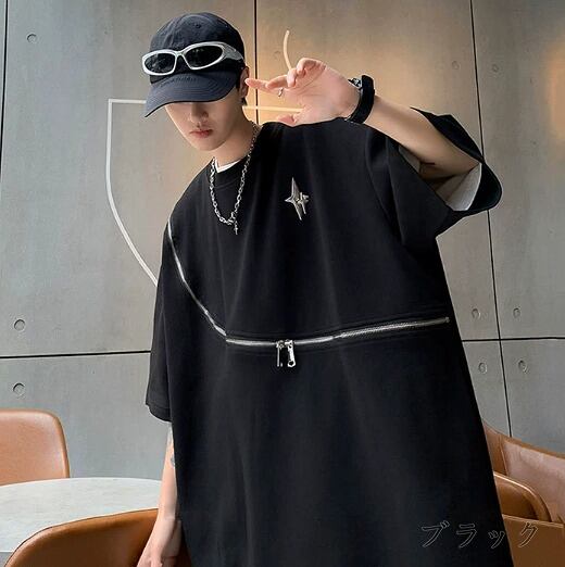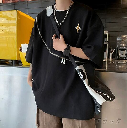 半袖Tシャツ 切り替え 体型カバー 着痩せ カジュアル 原宿系