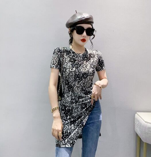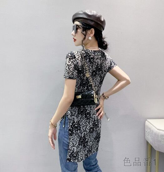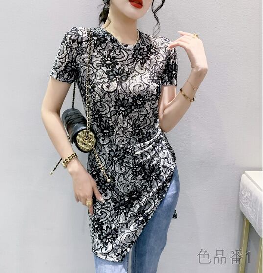 半袖Tシャツ プリント 切り替え スリム 着痩せ 【大きいサイズあり】