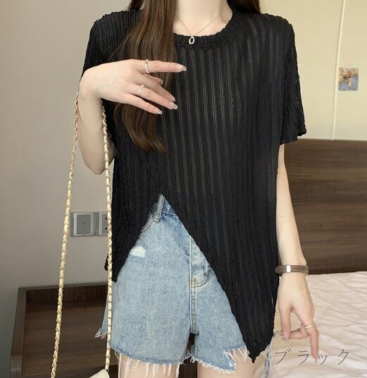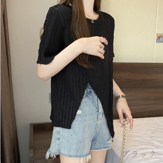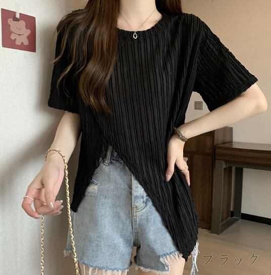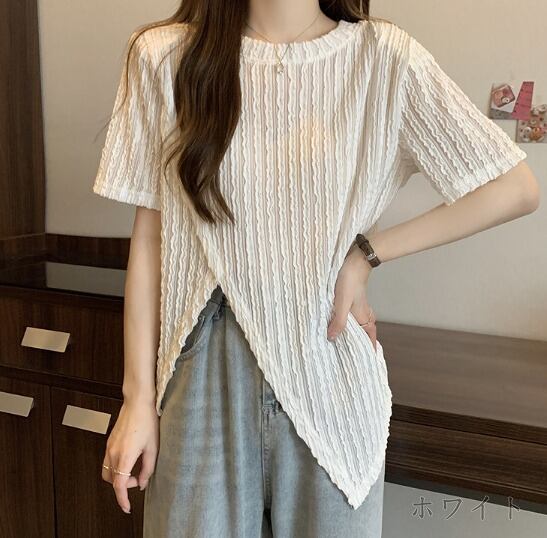 全2色 半袖Tシャツ アシンメトリー 切り替え 体型カバー 着痩せ シンプル カジュアル