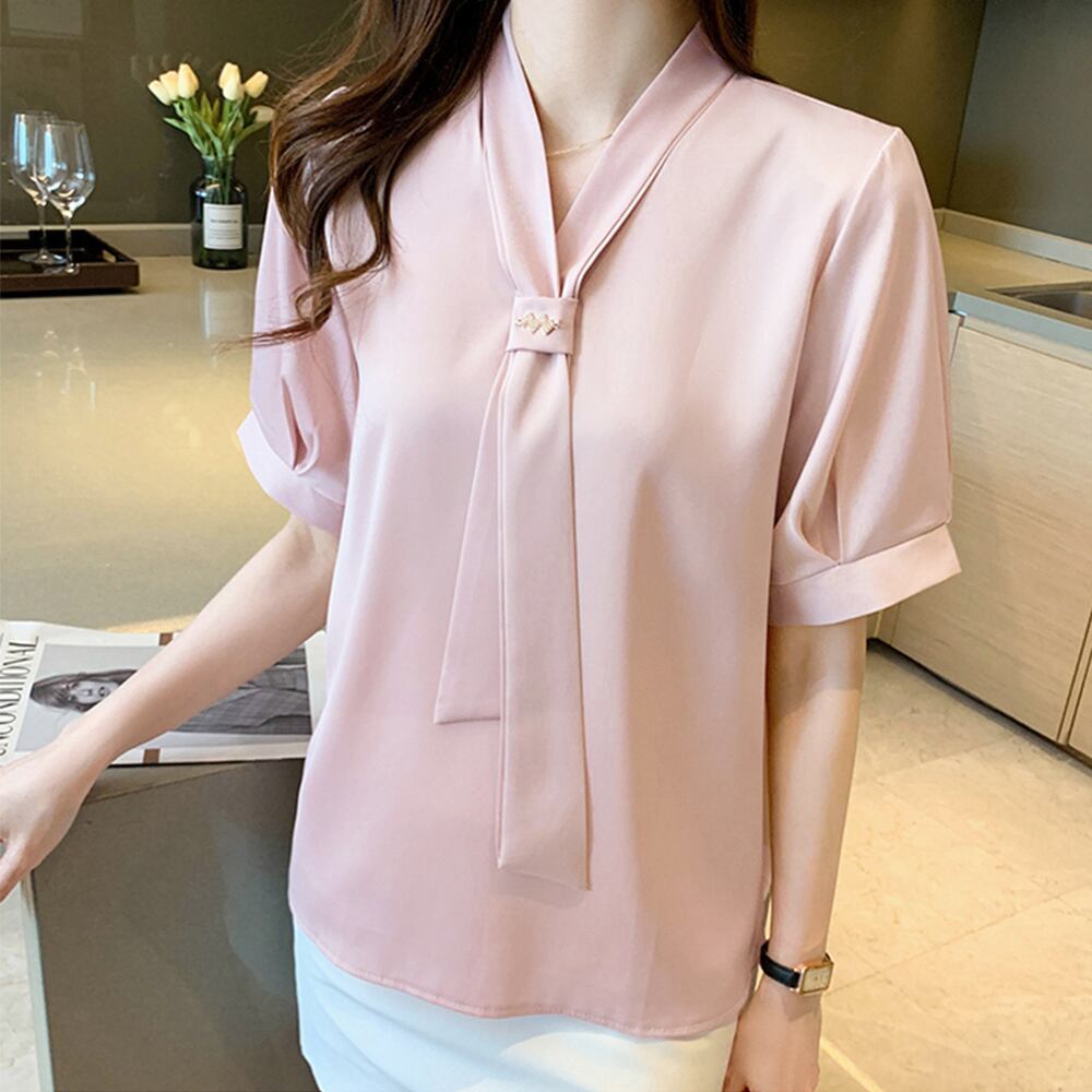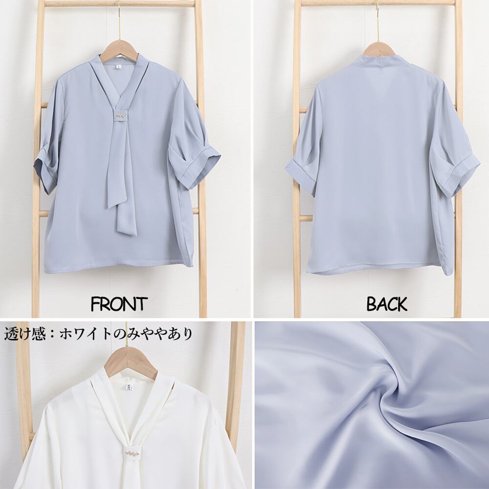 【日本倉庫即納】 ボウタイブラウス 半袖 レディース 無地