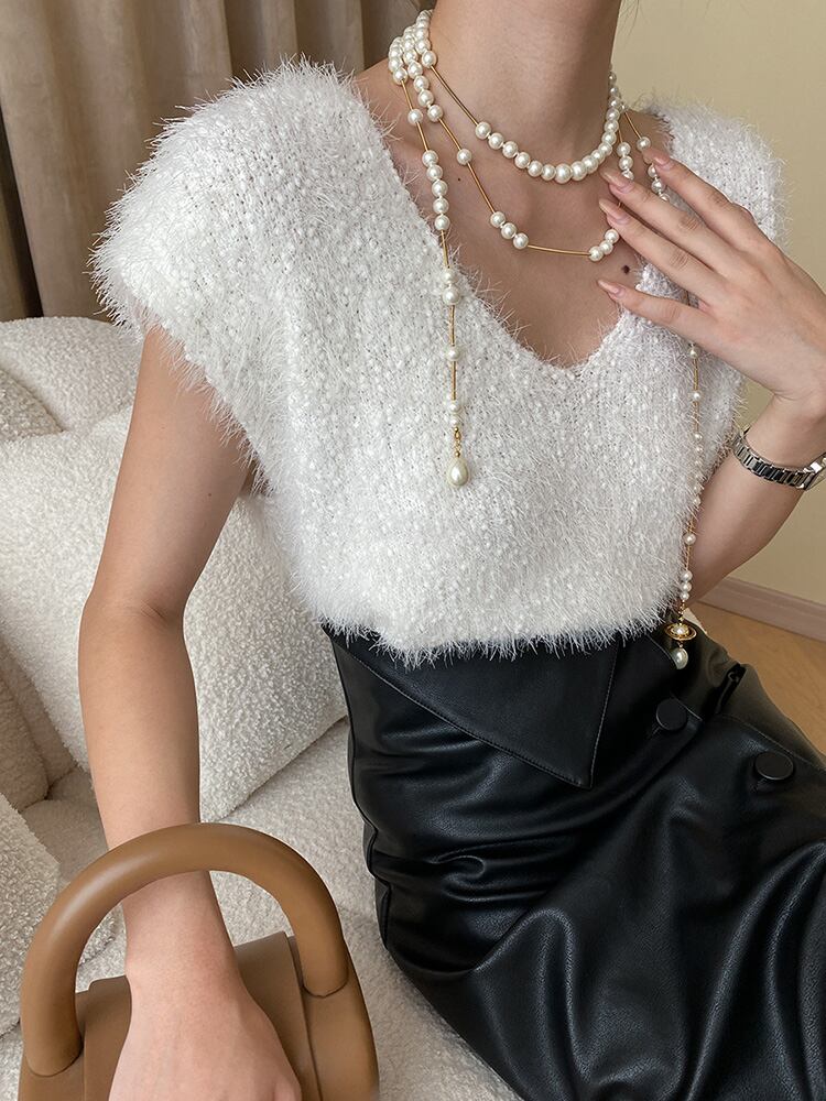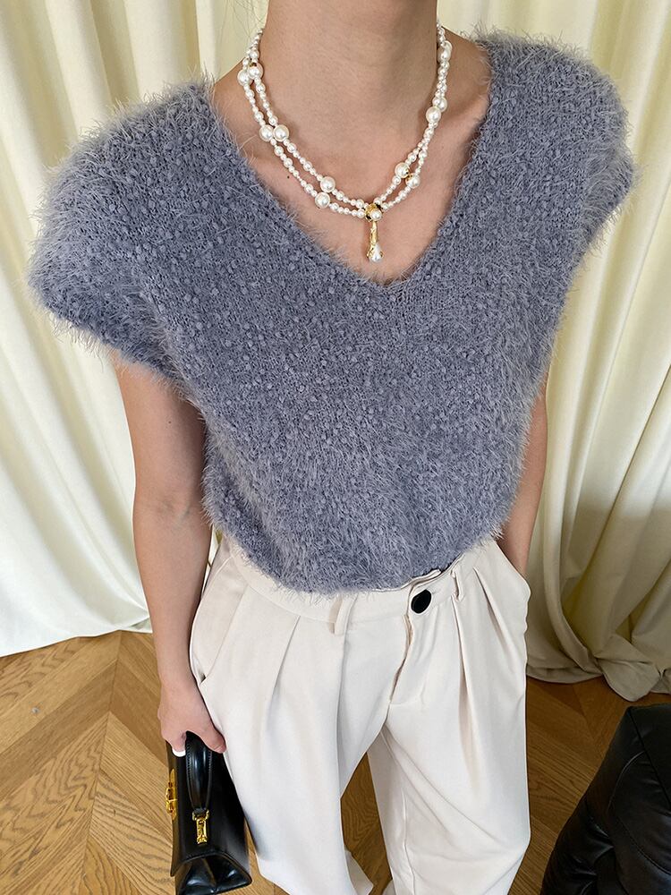 ニットベスト半袖レディース