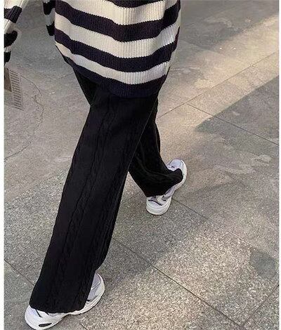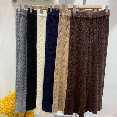 ニットパンツ レディース 秋冬 ニット ワイドパンツ きれいめ ケーブル編み 可愛い ゆったり ニットパンツ ワイド パンツ ロングパンツ 秋 冬 ケーブル リラックスパンツ ボトムス 無地 体型カバ