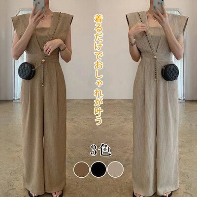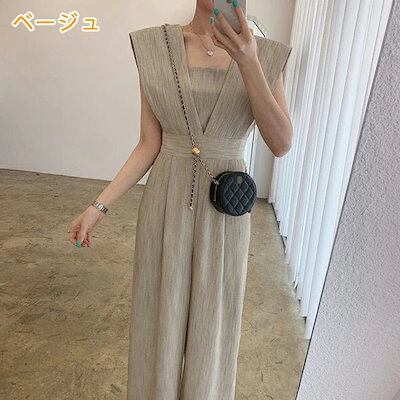 オールインワン レディース Vネック サロペット ワイドパンツ 春夏 きれいめ エレガント 美シルエット 着痩せ 体型カバー シンプル かわいい 美脚 無地 ゆったり おしゃれ カジュアル コーデ ス