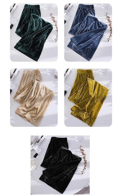 ベロア おしゃれ レディース ベロア プリーツ きれいめ 無地 ワイドパンツ 可愛い プリーツワイドパンツ 通勤 普段着 パンツ ボトムス ベロア生地 大人 体型カバー ベロア カジュア