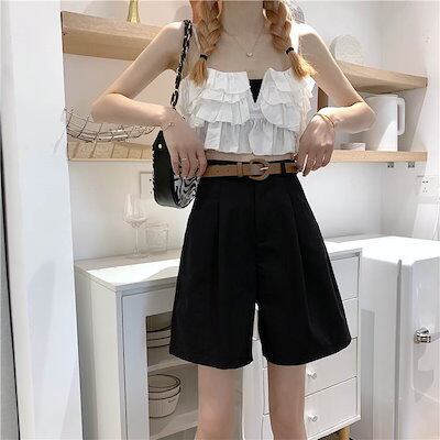 2色 ショートパンツ ボトムス レディース 膝上 ワイド かわいい 大人可愛い きれいめ シンプル カジュアル 黒 白 無地 キュロット ホットパンツ ズボン ミニ おしゃれ お洒落 大人可愛い 大人