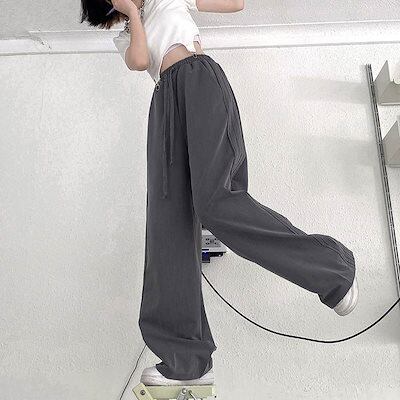 2色 パンツ レディース ボトムス ワイド ワイドパンツ フルレングス グレー ブラック 春 夏 秋 冬 M L XL 大人 おしゃれ 可愛い かっこいい 大人女子 カジュアル お洒落 ストリート 大