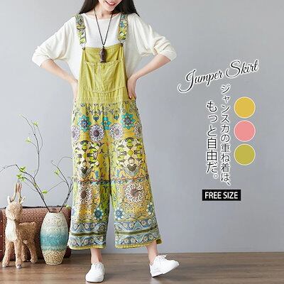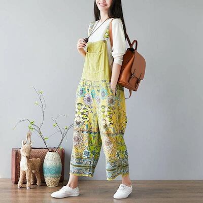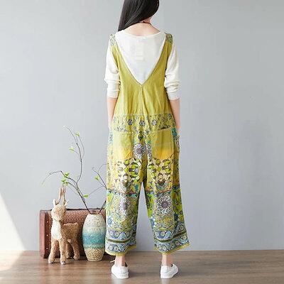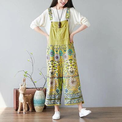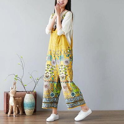 オールインワン レディース サロペット オーバーオール ワイドパンツ サスペンダーパンツ サスペンダー パンツ 大人 カジュアル おしゃれ エスニック 可愛い 花柄