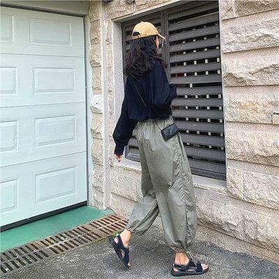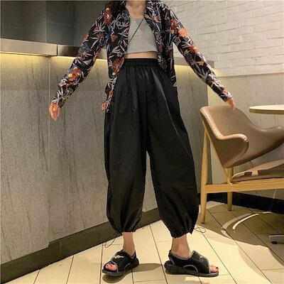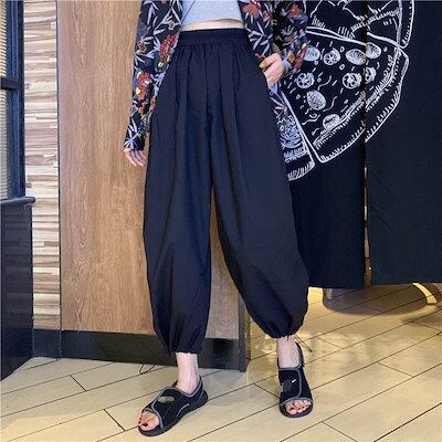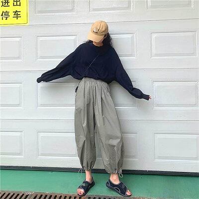 3色 パンツ レディース ワイドパンツ クロップドパンツ アンクル丈 7分丈 裾ゴム 裾絞り コードストッパー コードロック ギャザー おしゃれ かわいい ボーイッシュ ジェンダーレス ストリート ス