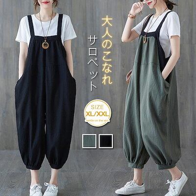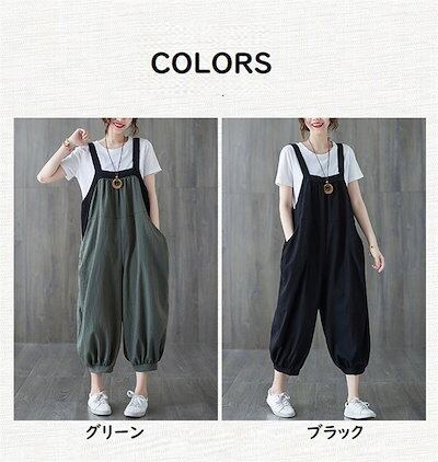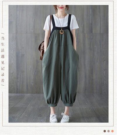 サロペット オールインワン 麻 綿 ワイドパンツ サロペ ジーパン 春 夏 秋 冬 レディース ファッション 九分丈 上品 可愛い カジュアル フォーマル ポケット ギャザー