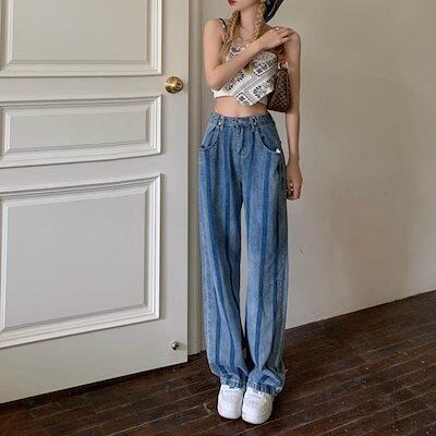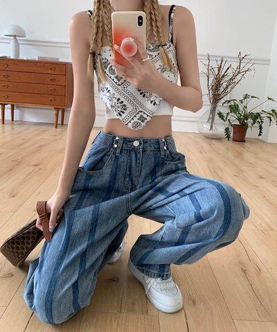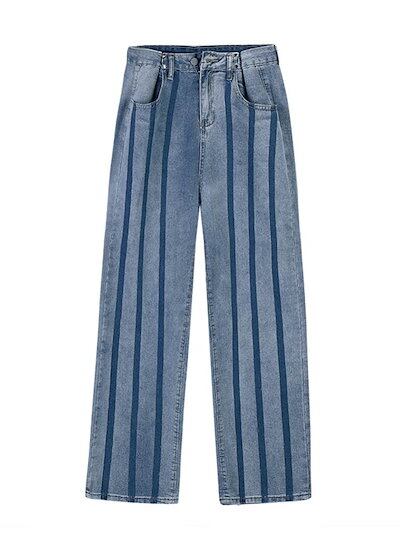 パンツ Gパン デニム デニムパンツ レディース ストライプ ボトムス ワイド フルレングス ハイウエスト 春 秋 冬 バイカラー 大きいサイズ おしゃれ 可愛い かっこいい 大人女子 カジュアル お