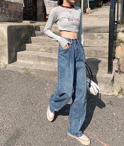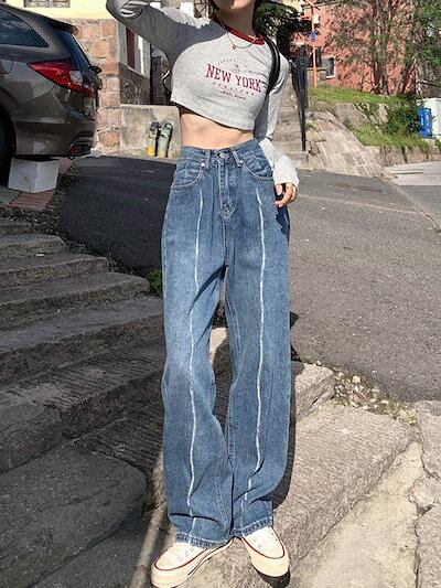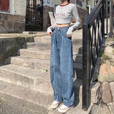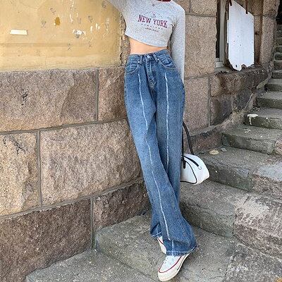 パンツ Gパン デニム デニムパンツ レディース ボトムス ワイド ワイドパンツ フルレングス ハイウエスト ブルー ライン 春 夏 秋 冬 大人 おしゃれ 可愛い かっこいい 大人女子 カジュアル