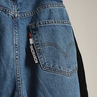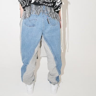 ボディソングデニムパンツ メンズ レディース BODYSONG. ボディソング BS239614 スウェットパンツ ドッキング ワイド ボトムス バイカラー ゆったり 大きめ ユニセックス 国産 日本製