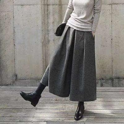 【3日出荷】新品 ガウチョパンツ 春服 フレアパンツ スカーチョ 春秋冬 ワイドパンツ レディース キュロットパンツ タック スカンツ ウール 防寒 保温 イージーパンツ 大きいサイズ 韓ファッション