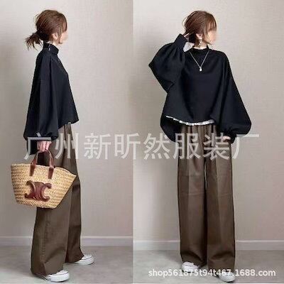【日系人気商品!】【急速出荷】2025初春新品 大きめサイズ カジュアル セット スウエット+ワイドパンツ セットアップ 体型カバー トップス 二点セット レディースファッション メガ割商品