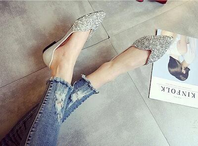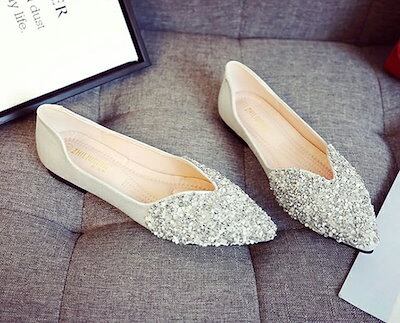レディースぺたんこパンプス キラキラ Vカット 大きいサイズ靴 バレエシューズ カジュアル フラット ローヒール ポインテッドトゥ 女っぽ 歩きやすい 疲れない