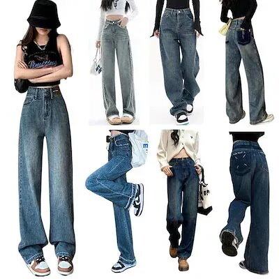 人気 デニムパンツ レディース ゆったり ワイド ハイウエスト フレア ダメージ 大きいサイズ レqoo10